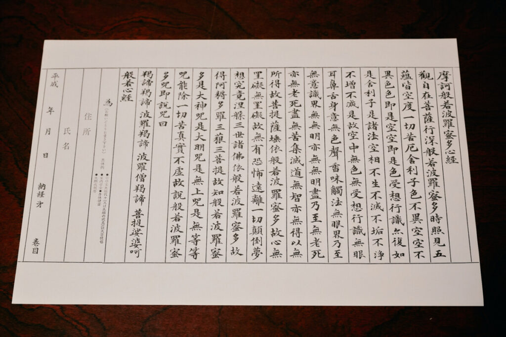 心を静かに落ち着けて、お経を書写しませんか?