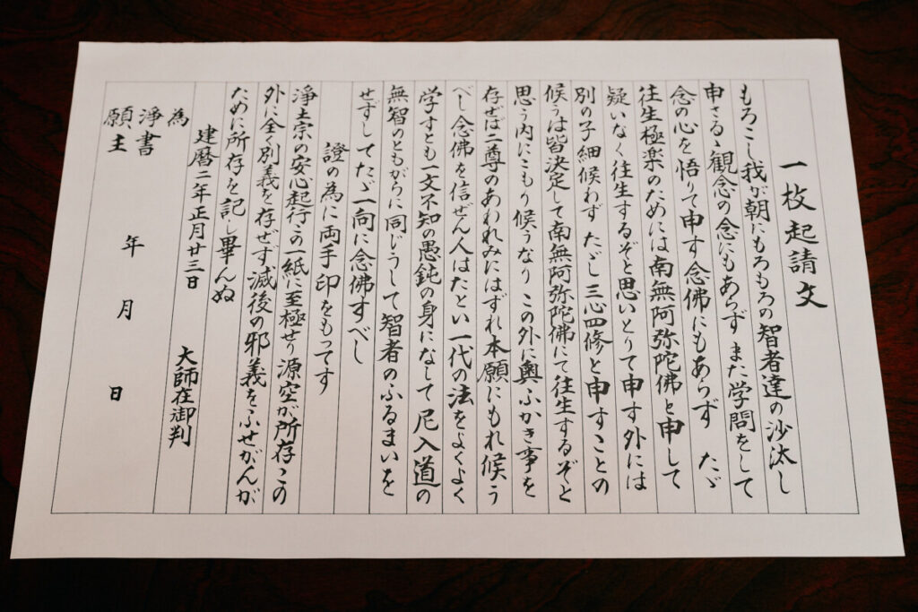 ※ 申込時に「般若心経」または「一枚起請文(法然上人のご遺言)」のいずれかを選んでください。